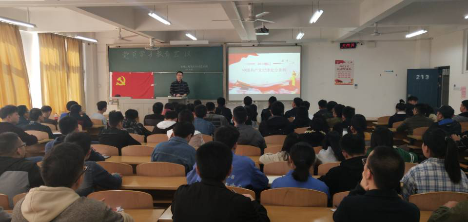 新修订的《中国共产党纪律处分条例》于2018年10月1日正式实施。为学习好、宣传好、贯彻好《条例》,2018年11月26中午在飞天楼213教室机械工程学院开展了《中国共产党纪律处分条例》廉政教育集中宣讲活动,学生第三党支部书记黄大键老师为我院全体学生党员上了一次专题党课。