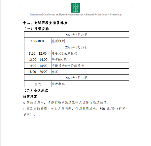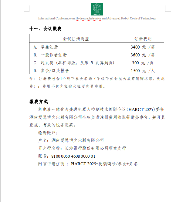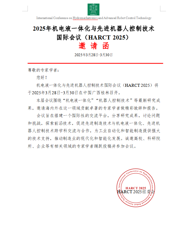 为切实举办机电液一体化与先进机器人控制技术国际会议,我们诚挚邀请您参与支持HARCT 2025。参与形式如下: