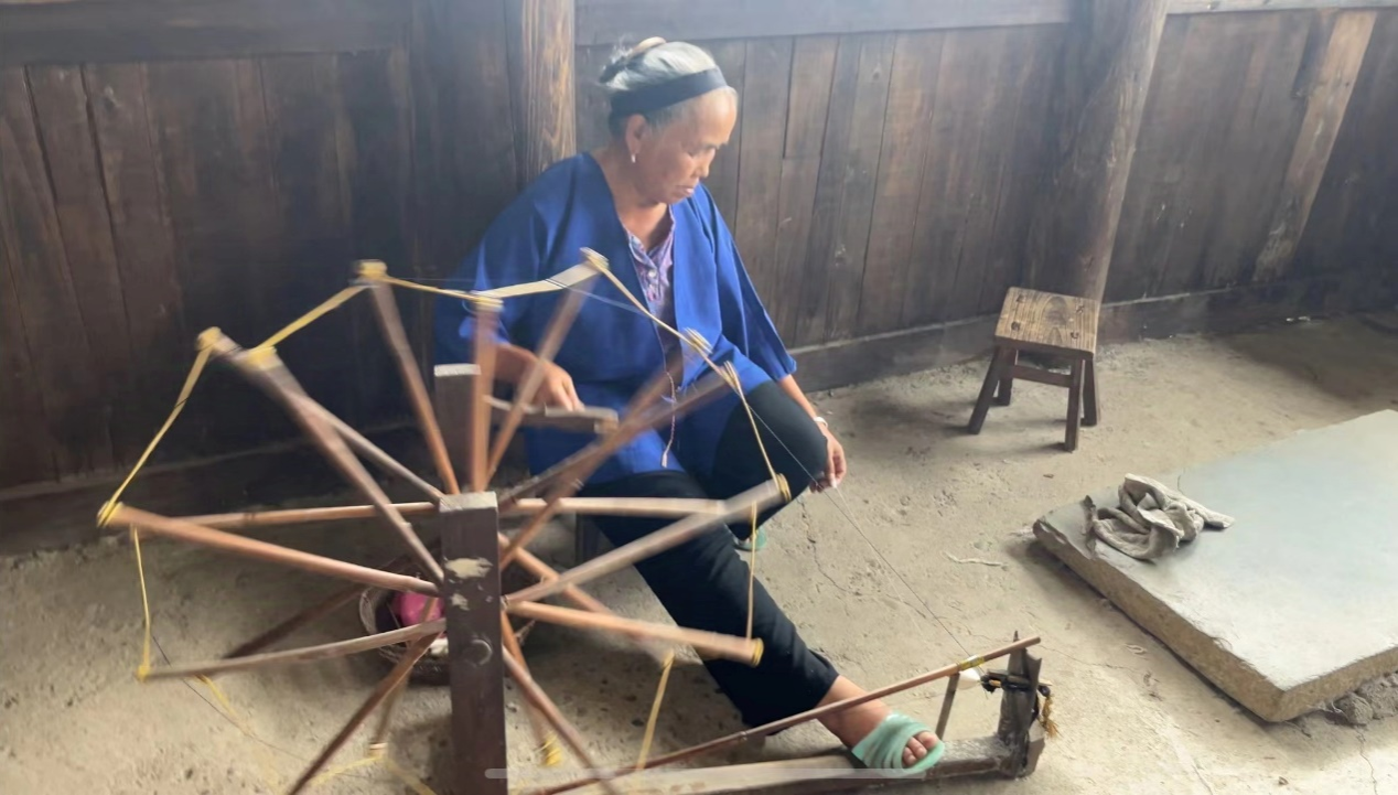 离开老鼓楼后,实践团队有幸拜访了一位资深的侗绣传承人。据其介绍,侗绣所采用的布料,皆源自匠人亲手制作,其制作过程不仅繁复精细,更需历经漫长时日。从在老鼓楼内亲眼目睹的纺织、织布起始,再到后续的染色、捶打与上浆等工序,每一步都凝聚着匠人的心血与智慧,确保了侗布成品质地细腻、色泽经久不衰。这些传统技艺,作为家族世代相传的宝贵财富,每一环节都蕴含着丰富的经验与精湛的技艺。