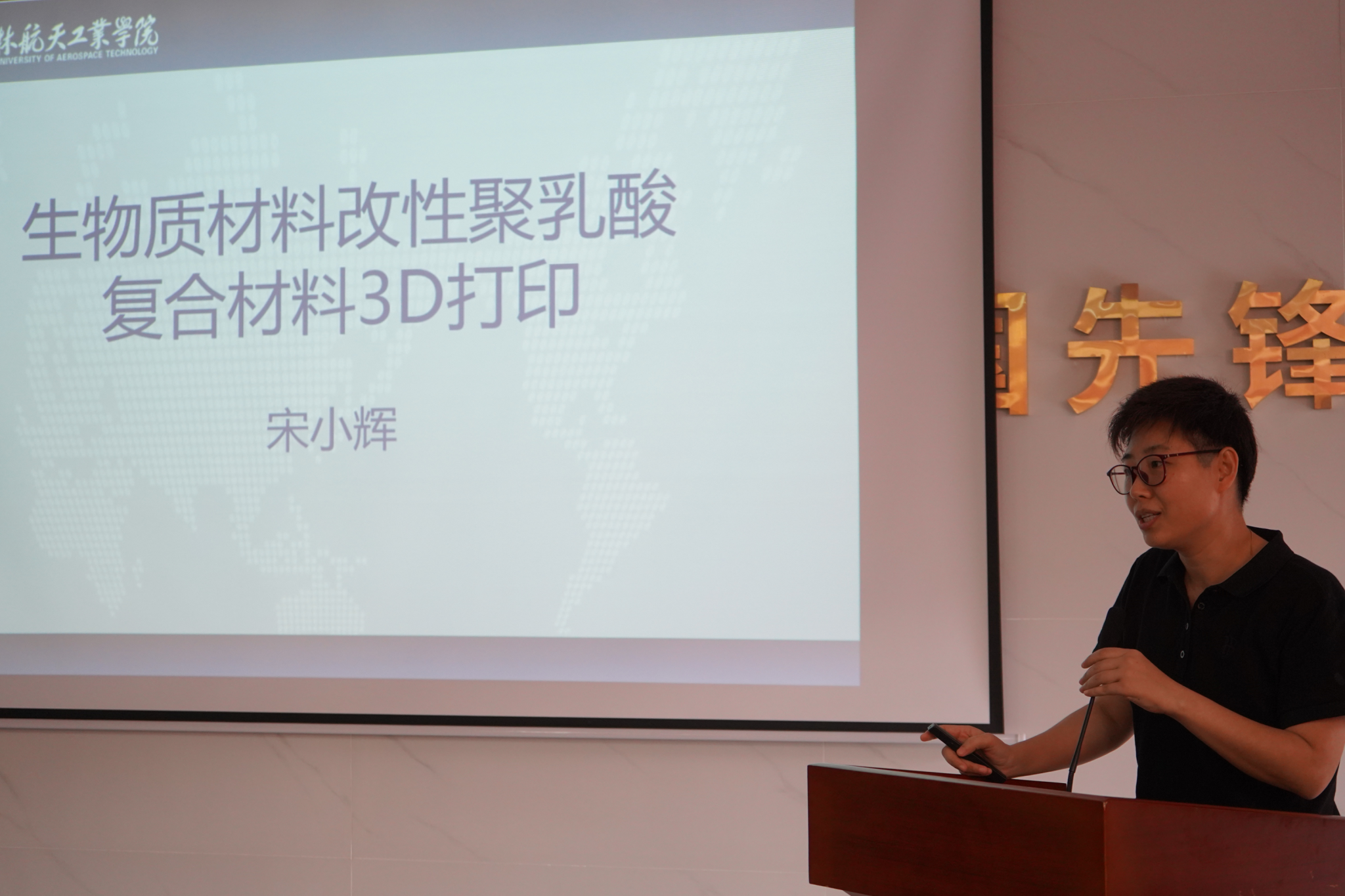 交流会上, 7位博士教师和2名研究生代表详尽报告了各自研究领域的研究工作、研究方法、研究思路。博士代表陈进武、刘坡、徐成福、邓文忠、刘奇星、宋小辉、史双喜和研究生代表分别以题为“钒基锆石微波介质陶瓷的结构与性能研究”、“多半径比例组合下双向弯曲变形行为研究”、“双主相Sm-(Ce/Y)-Co永磁合金相图与磁性能研究”、“轮胎电加热硫化关键技术及工艺特性研究”、“航空碳纤维复合材料叶片研制”、“生物质材料改性聚乳酸复合材料3D打印”、“低成本高性能钛合金高通量设计”、“制备及强韧化机制研究”、“连续纤维增强复合材料3D打印及性能研究”做了专题汇报。