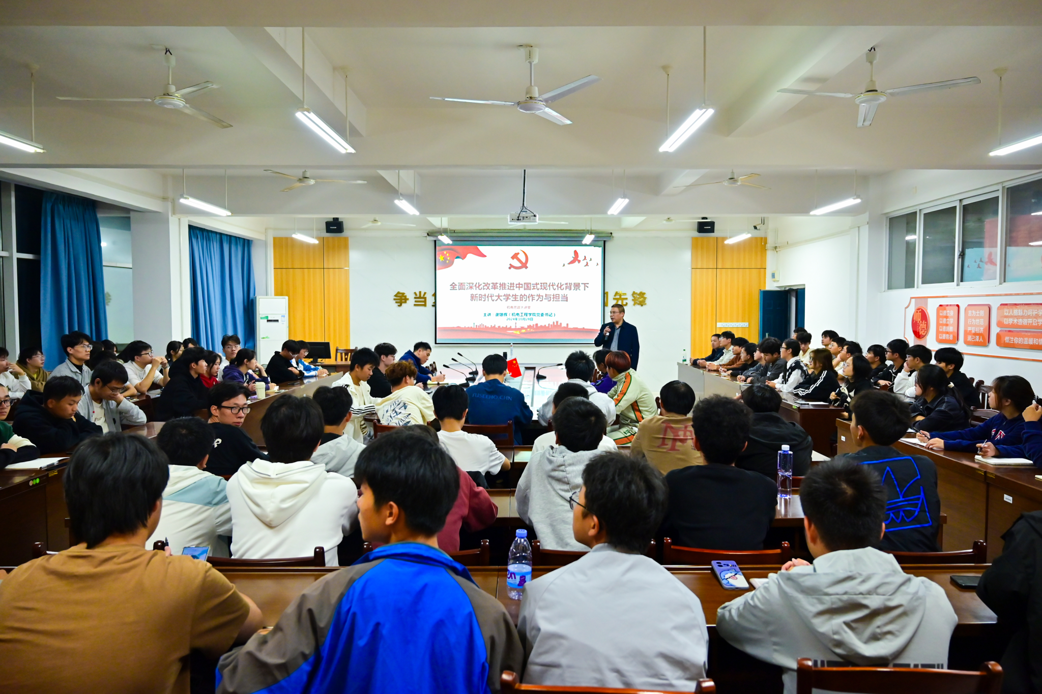 为深入学习贯彻党的二十届三中全会精神,10月28日晚,乐天使在巡天楼229会议室举办2024年秋季学期第一期思政大讲堂。此次大讲堂以《全面深化改革推进中国式现代化背景下 新时代大学生的作为与担当》为主题,由学院党委书记谢雄辉主讲,100余名师生聆听。