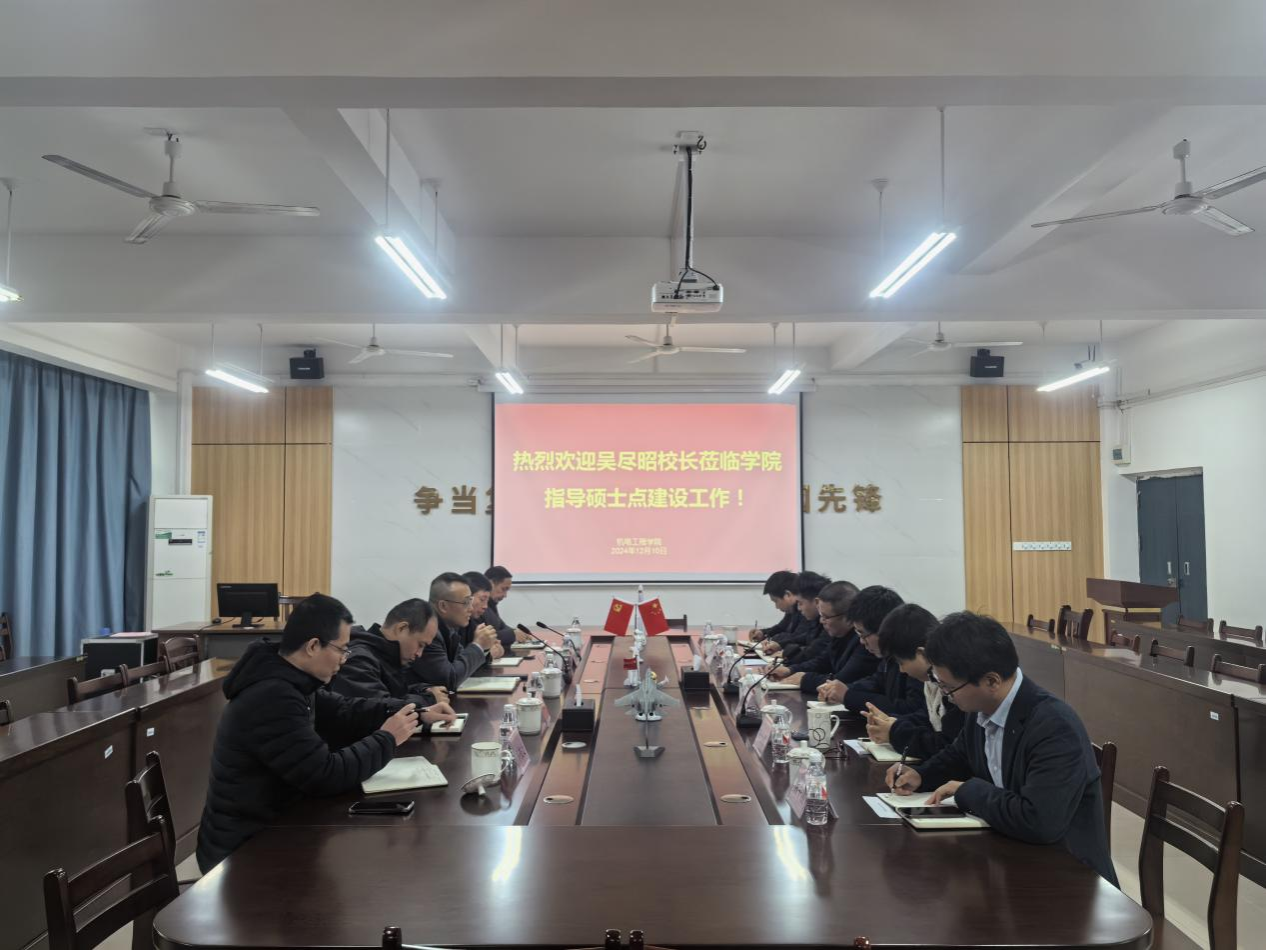12月10日上午,校长吴尽昭,副校长张立国,发规处、人事处、科技处等职能部门相关负责同志一行莅临乐天使,调研指导机械硕士点建设工作,并听取了相关汇报和建议。学院党政领导班子、博士教师代表参加了调研交流,会议由学院党委书记谢雄辉主持。