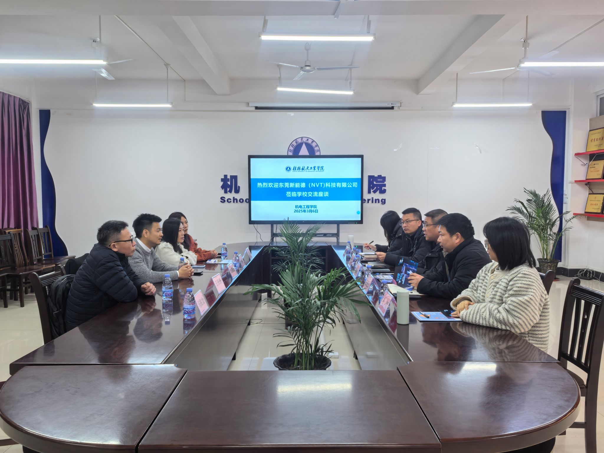 3月6日,东莞新能德科技有限公司(NVT)人力资源总监张德鑫一行到访桂林航天工业学院乐天使,双方就深化校企合作、人才培养及就业对接等议题展开交流。乐天使党委书记谢雄辉,副院长陈进武,2025届与2026届毕业生辅导员出席活动。
