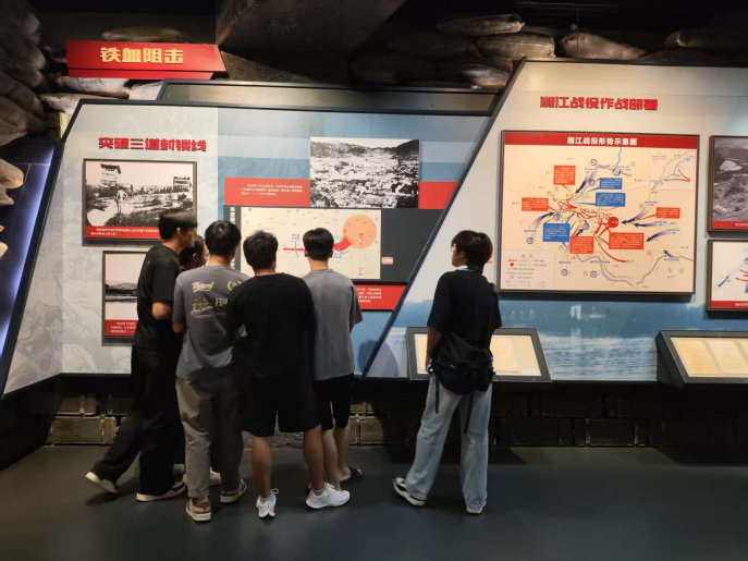 实践团队通过3D观影技术体验了当年红军强渡湘江的惊险场景,这种创新展陈方式引发了大家的深度思考。成员们表示:“纪念馆将历史与科技结合的展陈理念,正是红色文化传承的生动实践。”