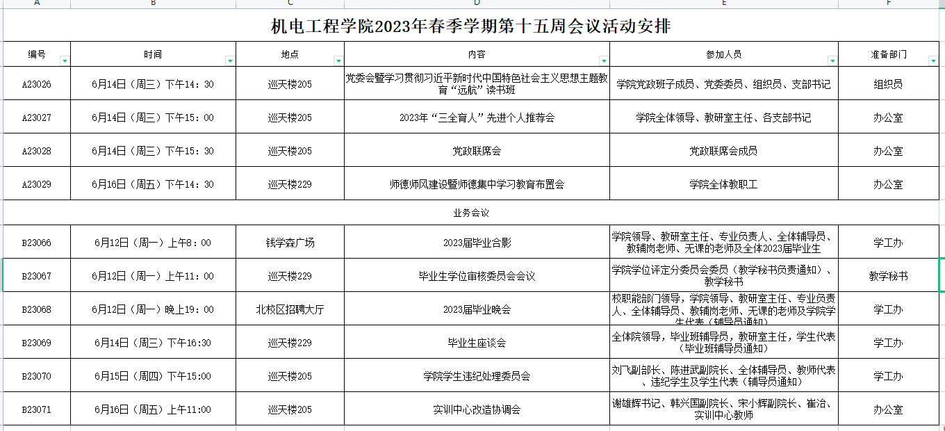 2023年春季学期第十五周会议活动安排