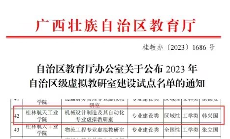 近日,自治区教育厅公布了2023年度虚拟教研室建设试点名单,我院机械设计制造及其自动化专业虚拟教研室获批区级虚拟教研室建设试点。