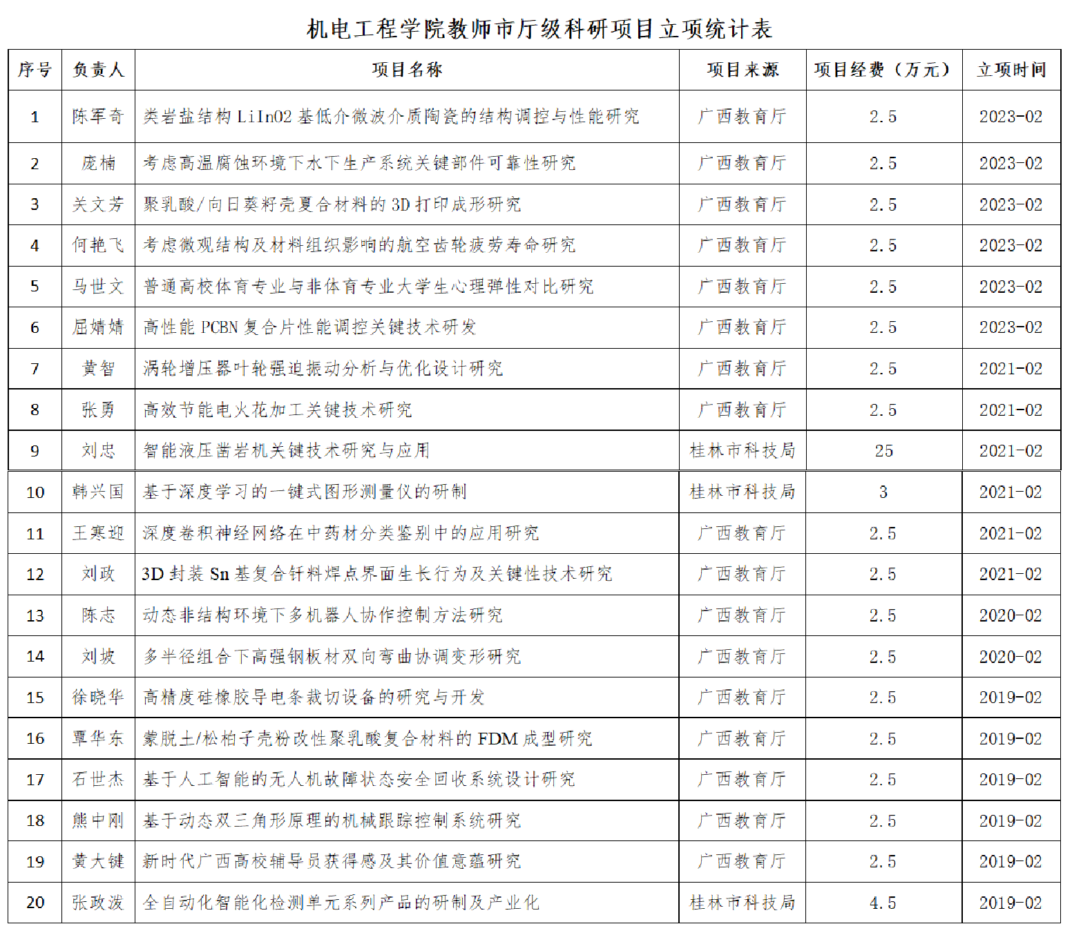 乐天使教师市厅级科研项目立项统计表