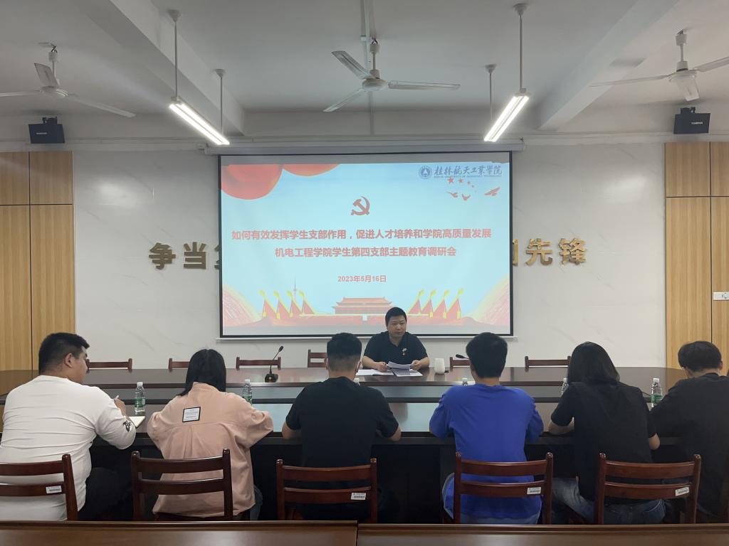 为深入学习贯彻习近平新时代中国特色社会主义思想主题教育,更好地发挥学生党员的先锋模范作用,以高水平党建推动学院高质量发展,5月16日,乐天使学生第四支部召开“如何有效发挥学生支部作用,促进人才培养和学院高质量发展”主题教育调研会。学院副院长陈进武,学生四支部支委及学生党员代表参会。