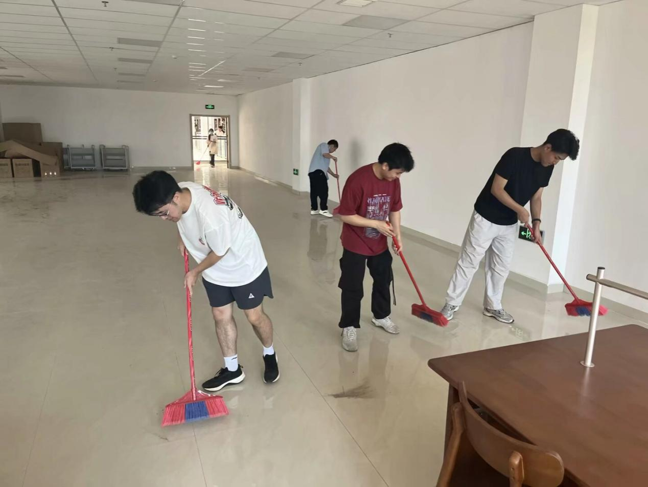 在问天楼图书馆静谧的书海之间,面对扬起的尘埃,学生党员们赓续吃苦耐劳的精神品格,化身劳动先锋。他们手执扫帚、抹布与拖把等清洁器具,默契分工、勠力同心,以昂扬姿态投身环境整治工作。擦拭书架时,党员们细致入微地拂去每一寸积尘;清理地面与书桌时,亦以精益求精的态度,确保每一处角落纤尘不染。