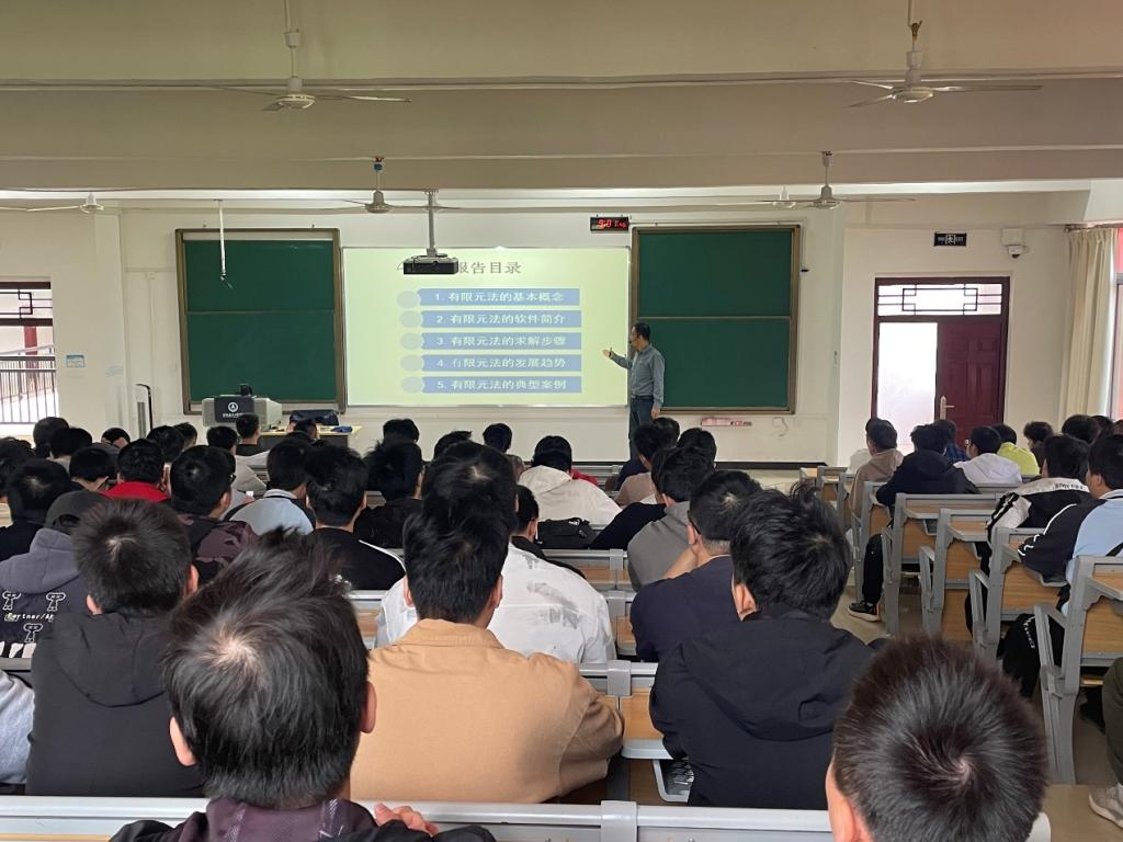 报告会上,陈军奇博士通过分享自身求学经历以及自身的内心体会,建议大家要不断强化党的基本知识学习,要有宽广的视野、开阔的胸襟和远大的理想。刘坡博士就“有限元分析方法简介及项目应用案例”进行了深入浅出的报告,并就个人科研项目案例,为学生讲解了有限元分析方法步骤,为学生今后的学习和发展提供了有价值的意见,并鼓励学生努力工作,积极拼搏,实现个人人生价值。