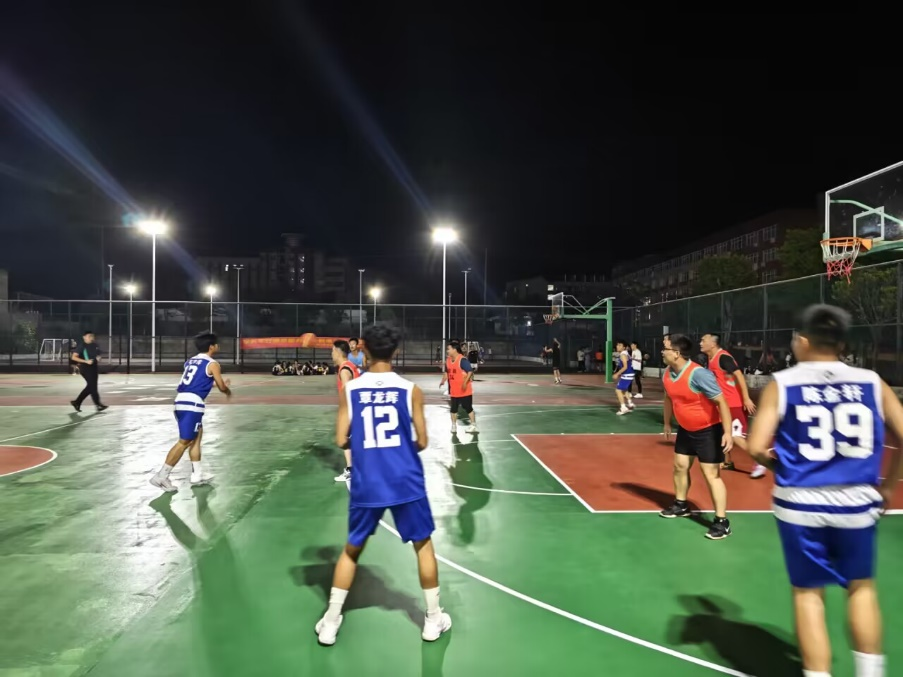 随着裁判一声哨响,韩兴国院长为比赛开球。学院纪委书记马世文和副院长陈进武作为教职工首发球员上场。球场上,每一位参赛师生都精神饱满,斗志昂扬,他们娴熟的技术和默契的配合演绎出一个又一个精彩瞬间。教师代表队根据多年经验及时防守,凭借过人的技巧和娴熟的配合,频频得分,充分显示了学院教师的风采。学生代表队依靠体能优势和灵活战术,突破重重防守,奋起投篮。一次次激烈的对抗、快速的突破、精准的抢断、稳健的投篮赢得了在场师生的阵阵掌声和欢呼声。