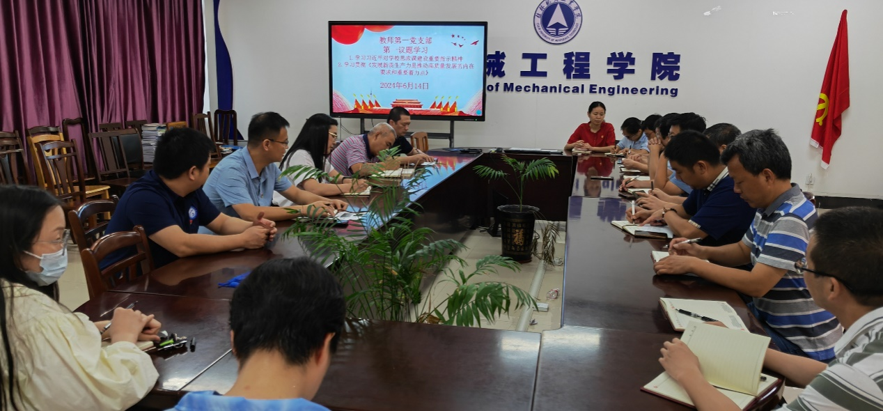 习近平总书记在中共中央政治局第十一次集体学习时强调:“发展新质生产力是推动高质量发展的内在要求和重要着力点,新质生产力已经在实践中形成并展示出对高质量发展的强劲推动力、支撑力”。为了深入学习贯彻习近平新时代中国特色社会主义思想,2024年6月14日中午,机电学院教师第一党支部在巡天楼205召开主题党日活动。