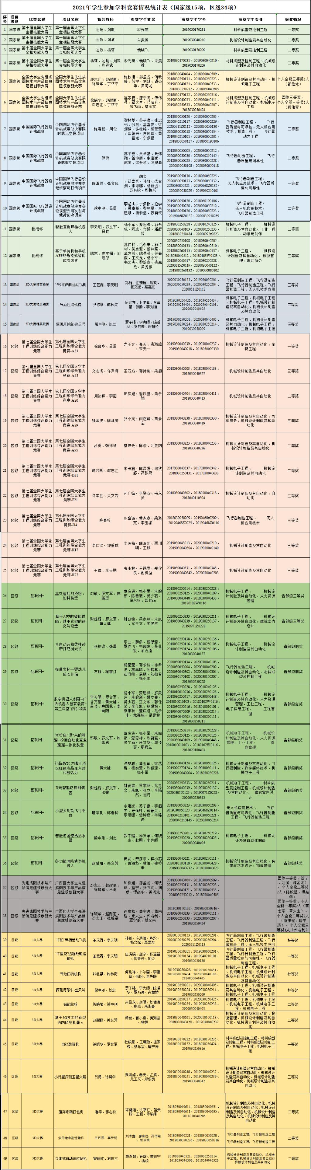 2021年机械工程学院学科竞赛获奖统计表
